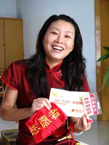 杜文娟高兴地“展示”着她在四川当志愿者时四川团省委等发给她的有关“证件”,她象宝贝一样珍藏着